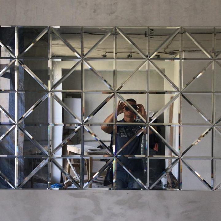 Использована зеркальная плитка "вытянутый ромб" с фацетом.